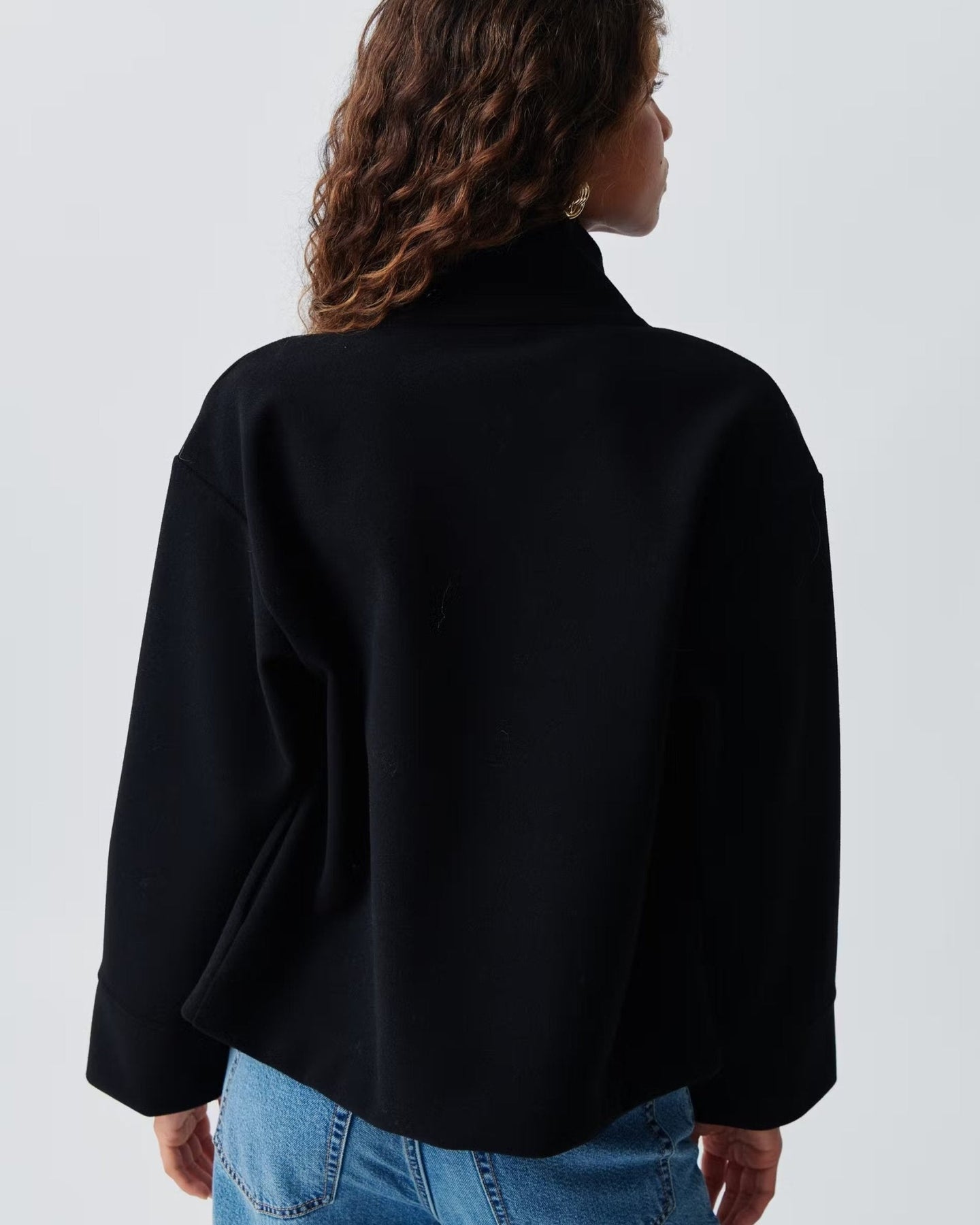 ✔️ Moderní design: Krátký model s asymetrickým zapínáním a velkým límcem