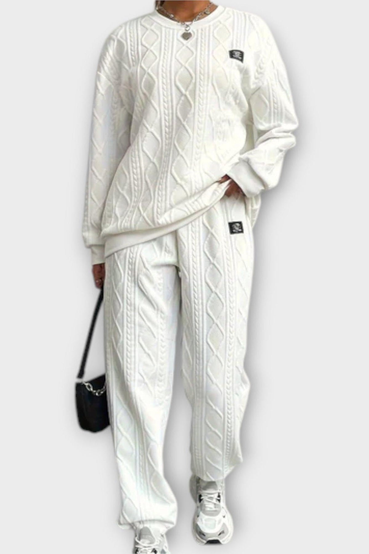 Tento sportovní set je ideální pro ty, kteří hledají městský vzhled s pohodlným střihem. Dlouhý rukáv a rovné kalhoty spojují praktičnost a styl do jednoho celku. Jemné detaily a bezchybné zpracování činí tento outfit dokonalou volbou pro všechny každodenní okamžiky – ať už jde o vycházku, cestování nebo relaxaci ve vlastním stylu.